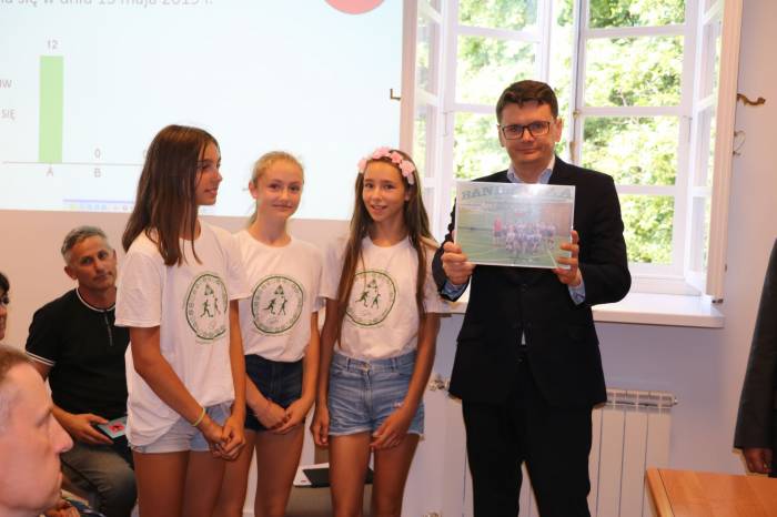 Jacek Zajkowski podziękował burmistrzowi i radzie za dotychczasowe wsparcie siatkówki a młode siatkarki przekazały burmistrzowi zdjęcie z turnieju.
