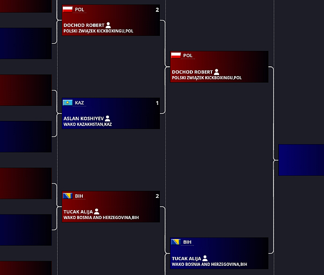 Po ćwierćfinałach kolejnym rywalem Roberta, jak wynika z cząstkowych rezultatów podanych przez WAKO w formie graficznej, będzie Alija Tucak z Bośni i Hercegowiny, który w ćwierćfinale pokonał Khusankhona Baratova z Uzbekistanu. Półfinały MŚ - od 27 listopada.
